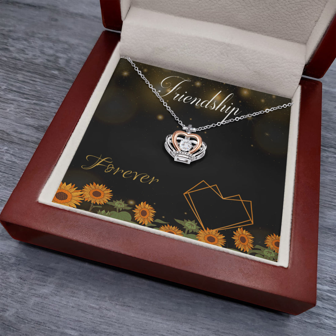 Friendship forever sunflower Crown Pendant Necklace