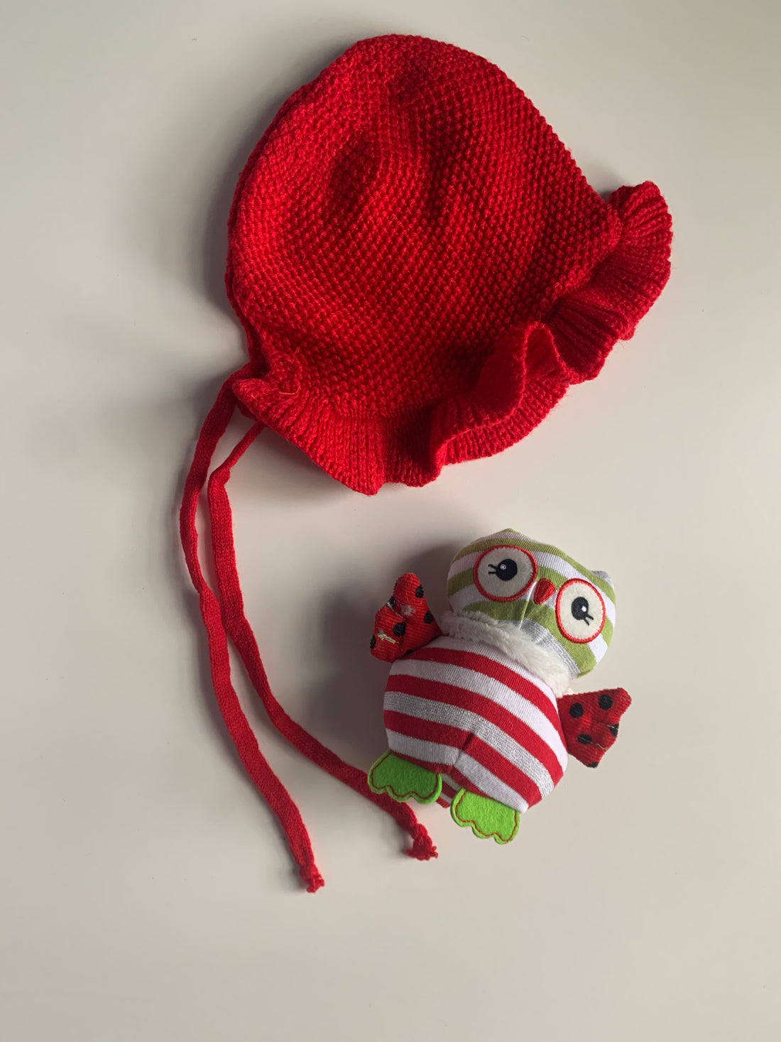 • Hats: Red knitted baby hat and puppy baby hat.