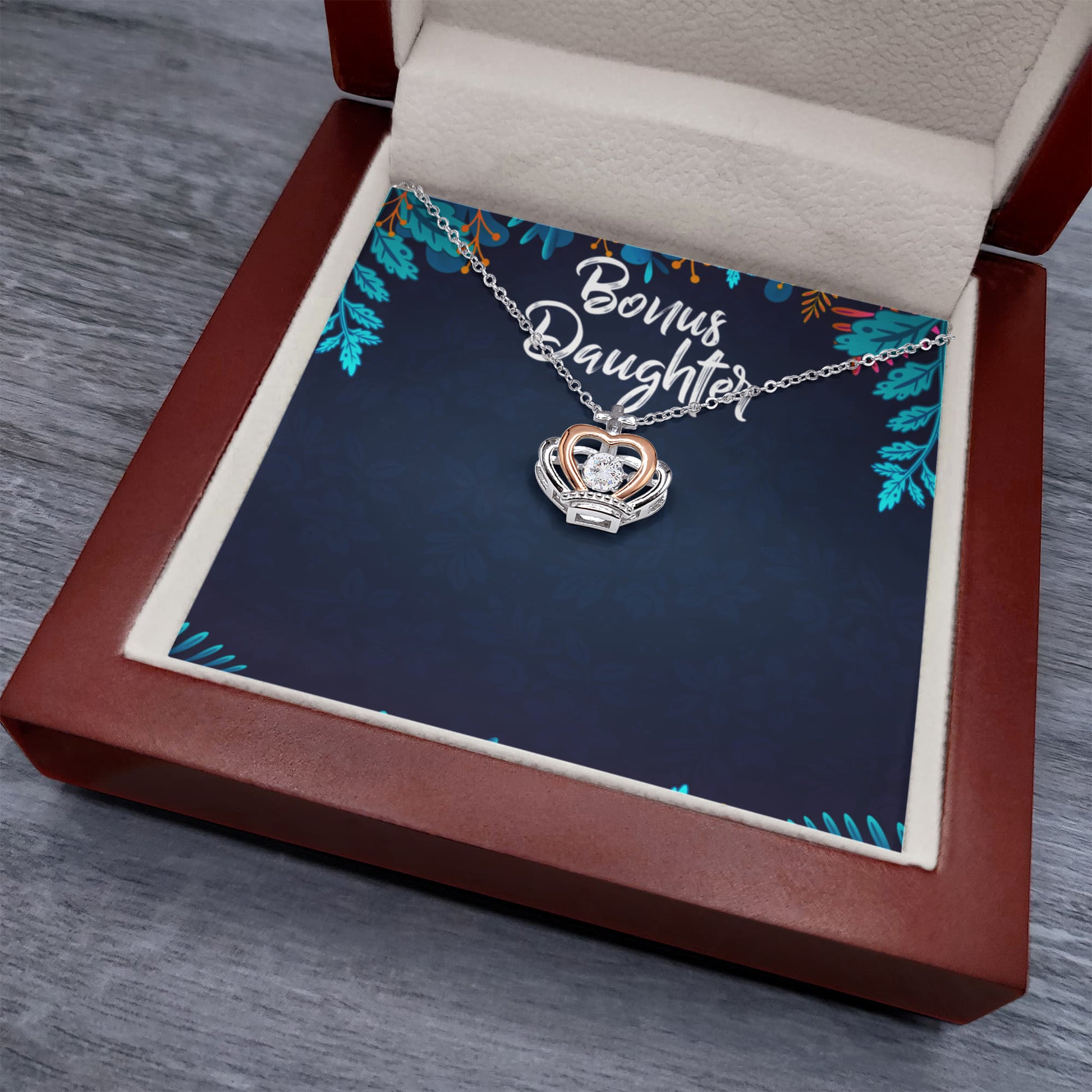 Imagine her reaction receiving this stunning Crown Pendant Necklace. Designed to resemble a regal crown, this exquisite piece features a dazzling cubic zirconia crystal at its center, catching the light with every movement. The delicate blend of silver and rose gold tones adds a touch of timeless beauty, making it the perfect gift for someone who reigns over your heart.