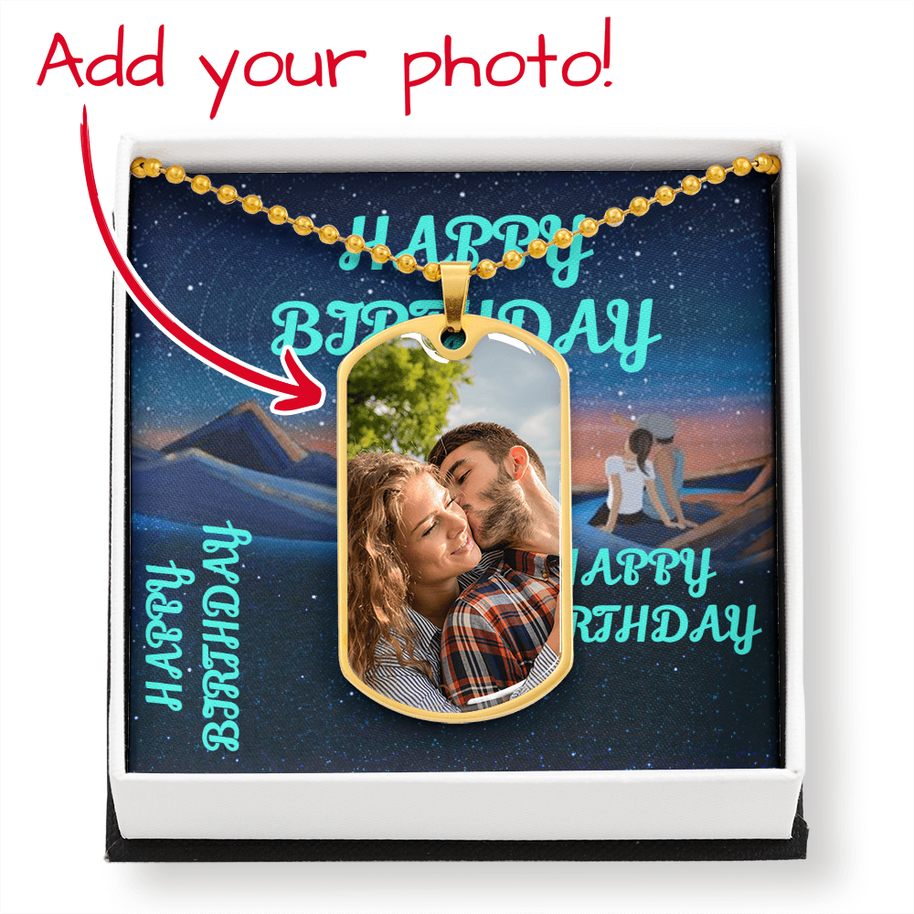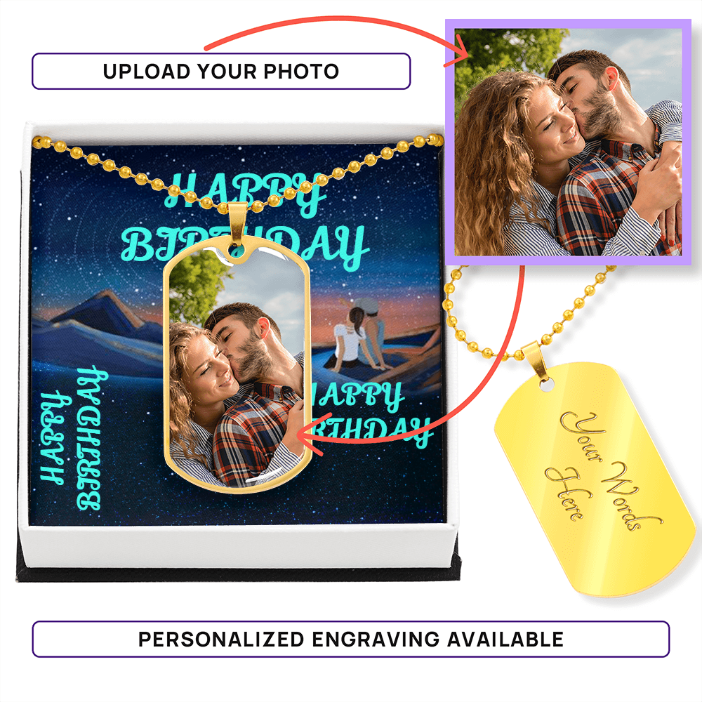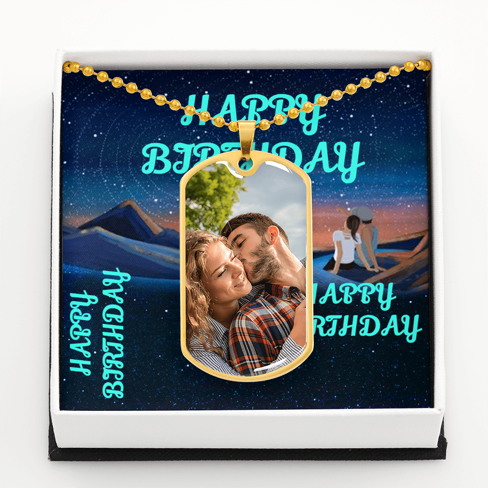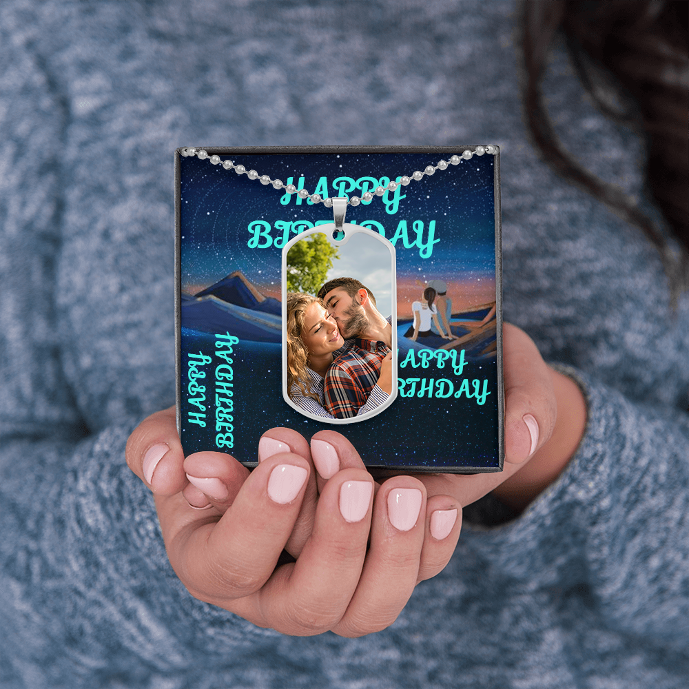 HAPPY BIRTHDAY CUSTOM Dog Tag Necklace BLUE