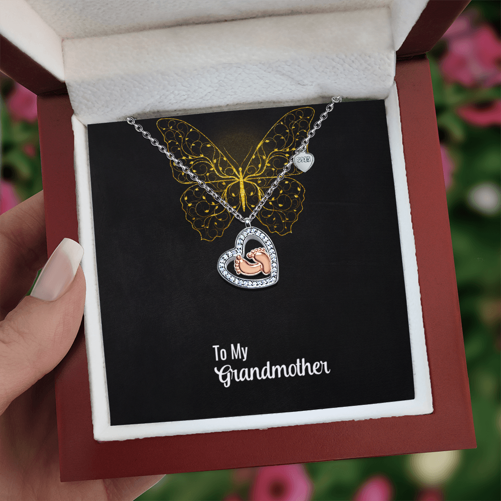 Imagine her reaction receiving this heartfelt symbol of love, family, and precious beginnings. The Baby Feet Heart Necklace features a sparkling heart-shaped frame adorned with shimmering cubic zirconia, surrounding a delicate pair of rose gold baby feet. A touching tribute to motherhood and new life, this necklace is the perfect way to celebrate a new mom, a cherished child, or a growing family.
